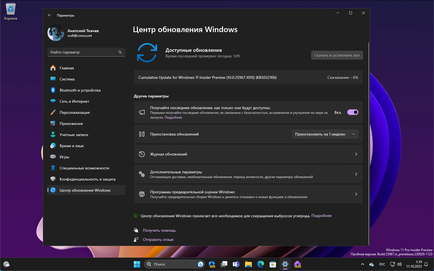 Примечание. Microsoft заблокировала установку обновлений для инсайдеров Windows 11 в России и Беларуси. Для установки Windows 11 Insider Preview Build 25967 вы можете использовать наши DNS-серверы: Установка инсайдерских сборок Windows 11 с помощью Comss.one DNS.