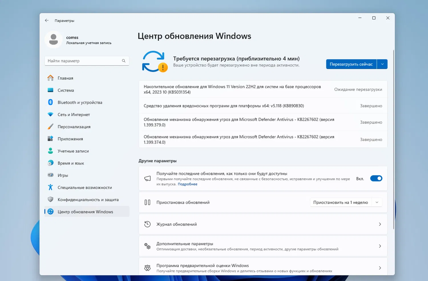 Для завершения установки потребуется перезагрузка компьютера. После обновления номер сборки Windows 11 поменяется на 22621.2428.