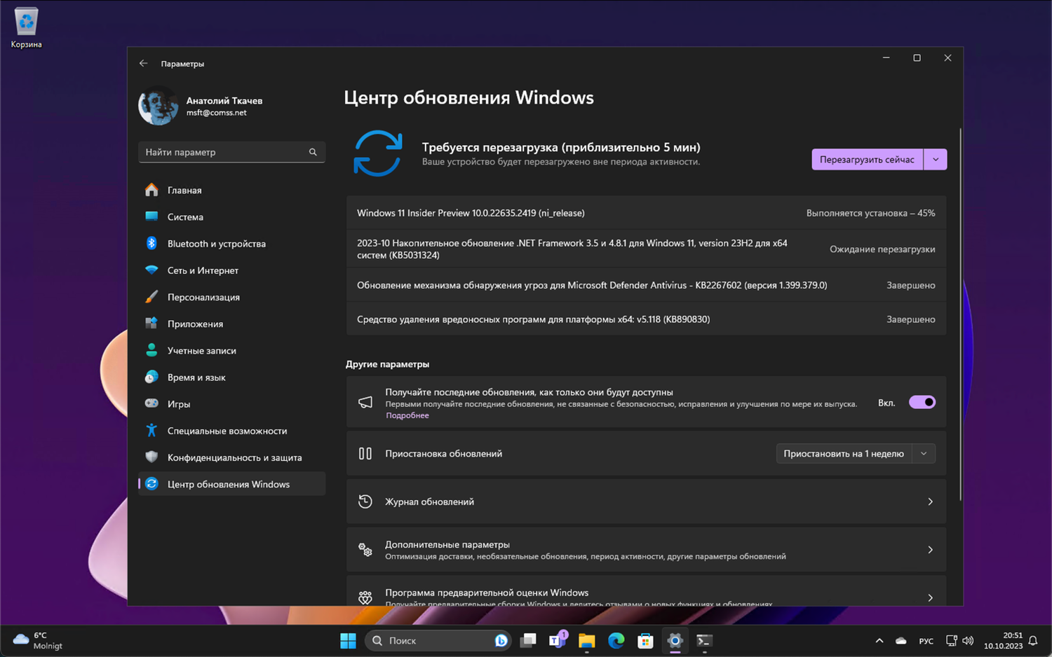 Для завершения установки потребуется перезагрузка компьютера. После обновления номер сборки Windows 11 поменяется на 22635.2419.