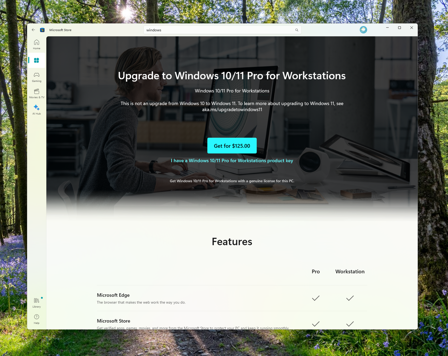 Для участников каналов Beta и Release Preview, использующих версию 22309.xxxx.x Microsoft Store и выше, представлено визуальное обновление страниц лицензий Windows. Они теперь соответствуют стилю Windows 11, а сравнительные таблицы между различными версиями Windows помогут пользователям легче выбрать наиболее подходящую лицензию.