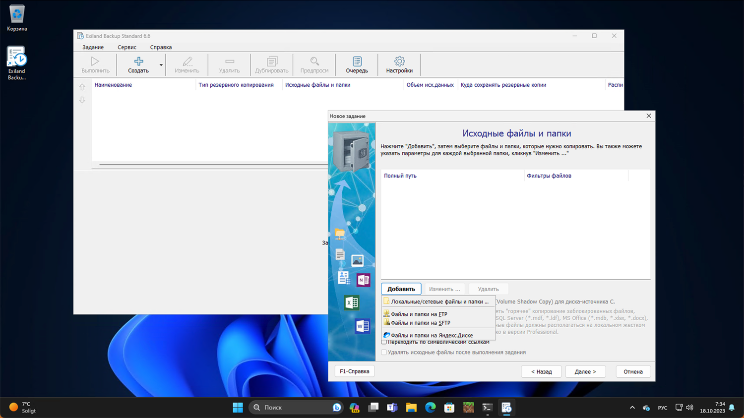 Среди функций Exiland Backup Standard можно выделить возможность создания резервных копий на различные носители данных, включая локальные диски, сменные носители, а также по FTP/SFTP и облачное хранилище (Яндекс.Диск). Одной из особенностей является возможность генерирования различных видов копий, например, зеркалирование папок.