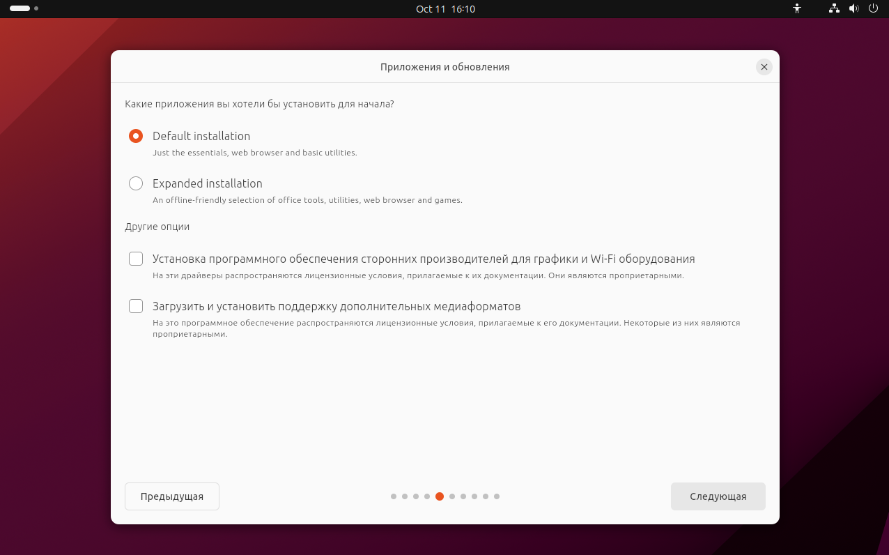 Стандартная опция установки Ubuntu 23.10, та, которую многие пользователи выберут, нажимая "Далее" в установщике, является минимальной. В нее включены только самые необходимые компоненты: веб-браузер, терминал, текстовый редактор и средства для установки дополнительных приложений. Это изменение значительно улучшает процесс начальной настройки системы и позволяет пользователям более свободно выбирать, какие приложения им нужны.