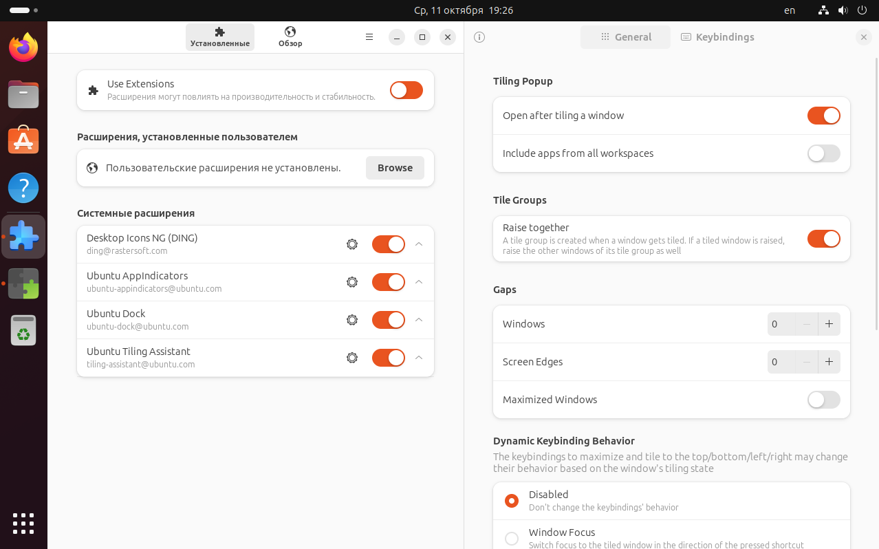 - Расширение Tiling Assistant: для улучшенного тайлинга, установка включает предустановленное расширение Tiling Assistant.