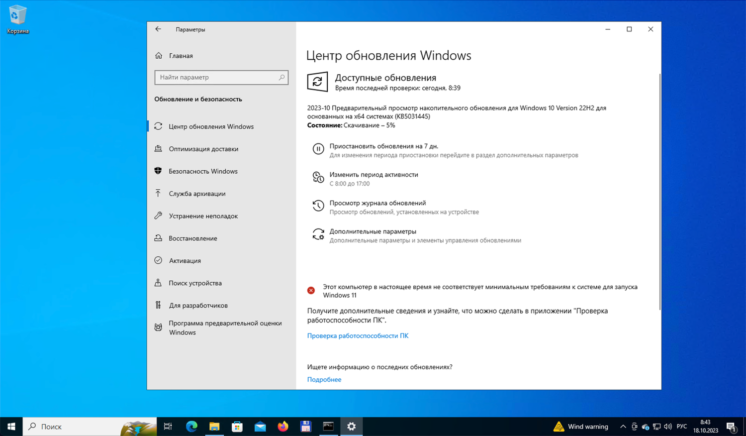 Обновлено: 27.10.2023. Обновление KB5031445 (Build 19045.3636) Preview для Windows 10, версия 22H2 доступно для установки в Центре обновления Windows как «необязательное исправление» и для ручной загрузки в Каталоге Центра обновления Майкрософт.