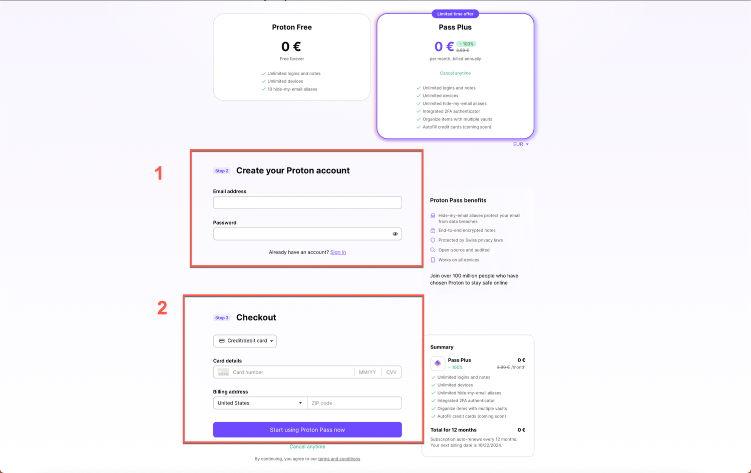- Кроме того, при получении бесплатной лицензии на Proton Pass Plus требуется ввести данные зарубежной банковской карты.