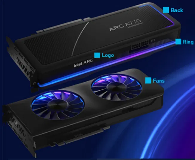 - Улучшите подсветку вашей системы с помощью Intel Arc RGB Controller. Этот контроллер был специально разработан для управления 90 индивидуально настраиваемых светодиодами на графических картах Intel Arc A770 Graphics Limited Edition.
