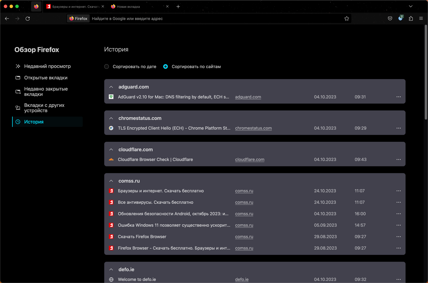 Теперь пользователи Firefox видят все содержимое всех открытых окон браузера. Кроме того, отображаются синхронизированные вкладки, а историю просмотров теперь можно сортировать по дате или по сайту.