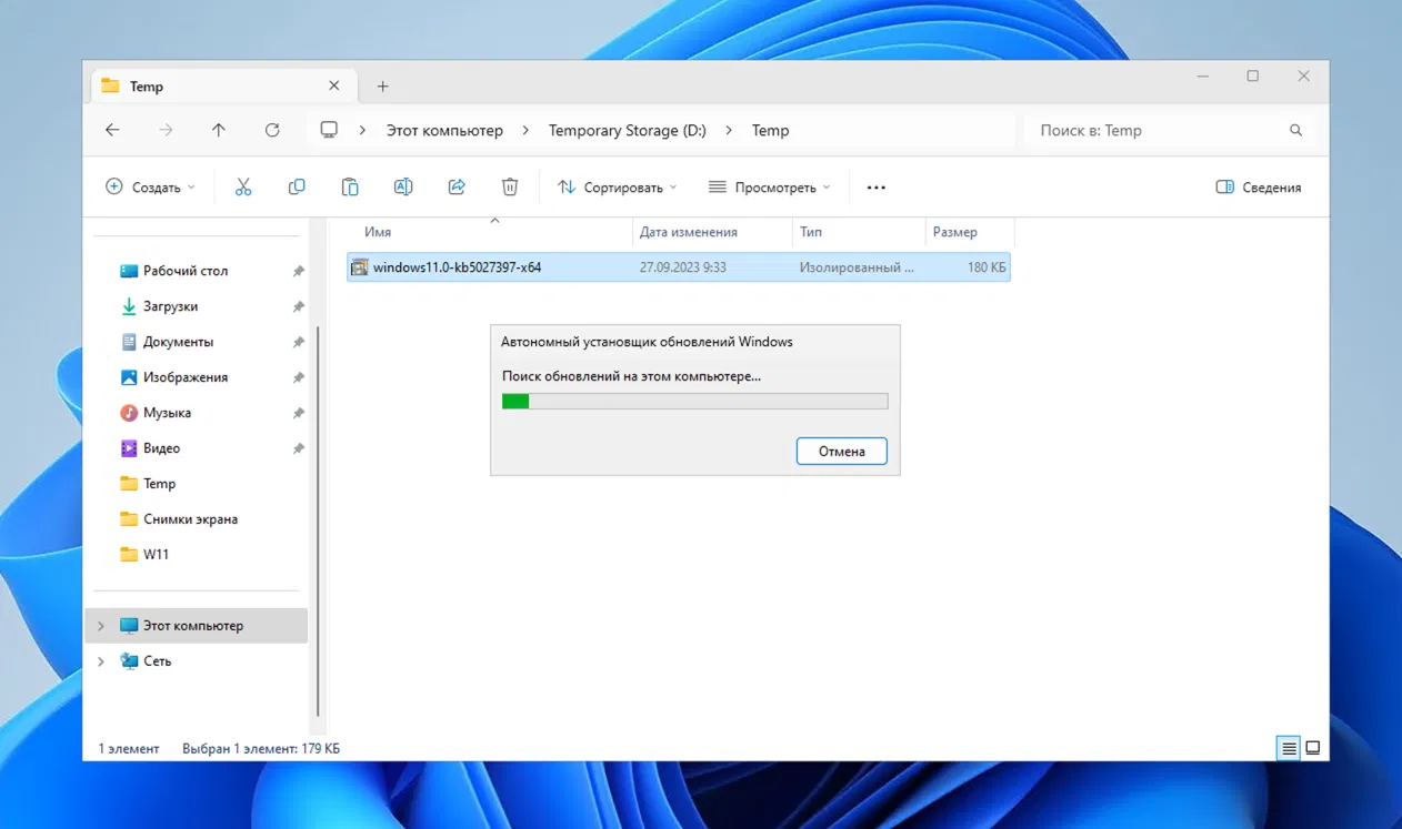 Для обновления с Windows 11, версия 22H2 до Windows 11, версия 23H2 понадобится лишь небольшое накопительное обновление KB5027397 – активационный пакет, размером всего 179 килобайт. Данный пакет можно описать как небольшой, быстроразворачиваемый «переключатель», который активирует функции Windows 11, версии 23H2. После его установки новые сборки Windows 11, версия 23H2 будут приходить автоматически с помощью Центра обновления Windows.