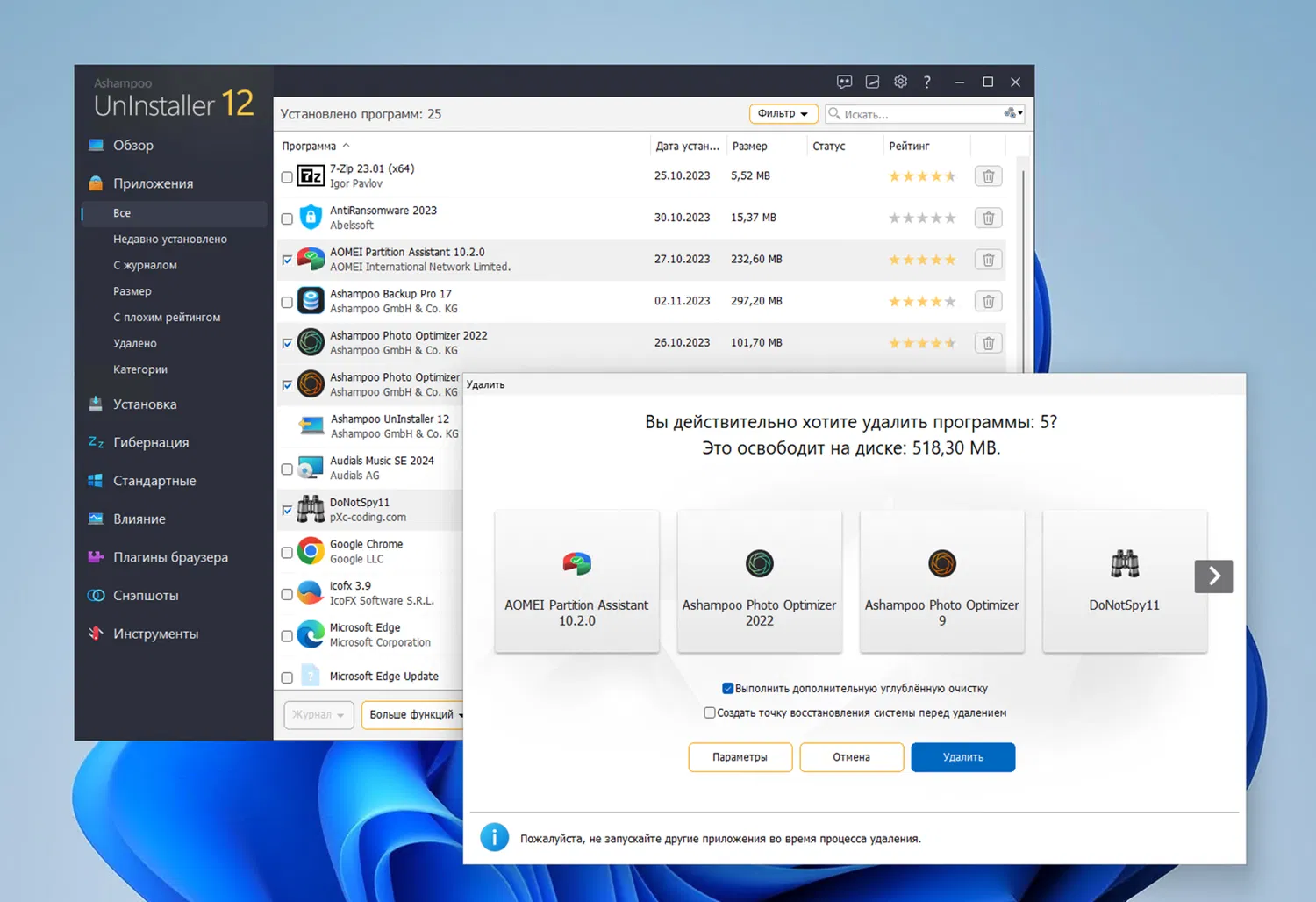 - Пакетный режим: Вы можете выбрать несколько приложений для одновременного удаления, что экономит время и усилия.