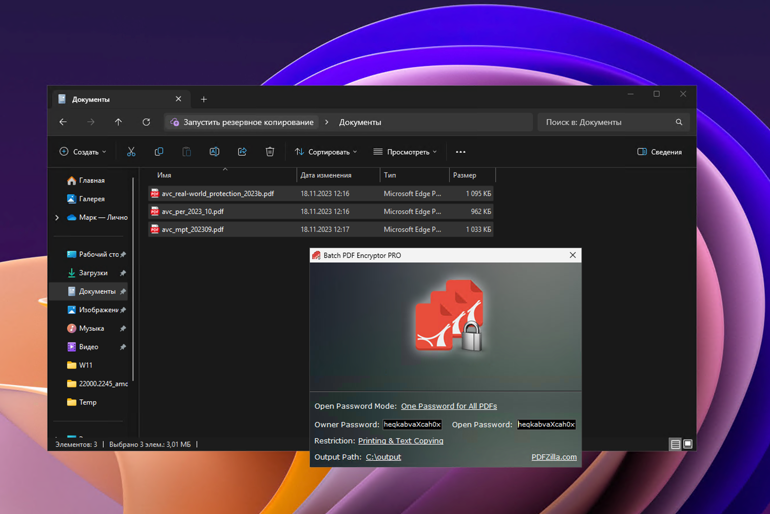 - Установка одного пароля для нескольких PDF: Также есть возможность защитить все PDF-файлы одним паролем.