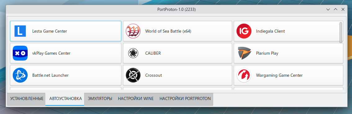 PortProton поддерживает установку следующих игровых лаунчеров: