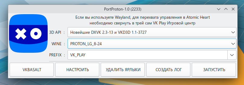 Для запуска PortProton откройте меню приложений и запустите PortProton.