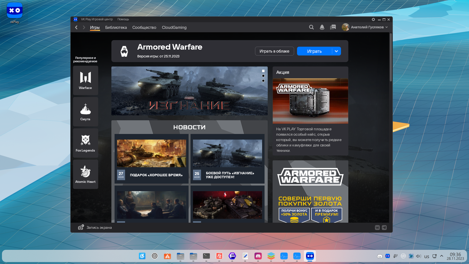 Для установки игрового центра VK Play и затем игры Armored Warfare воспользуемся инструментом PortProton.