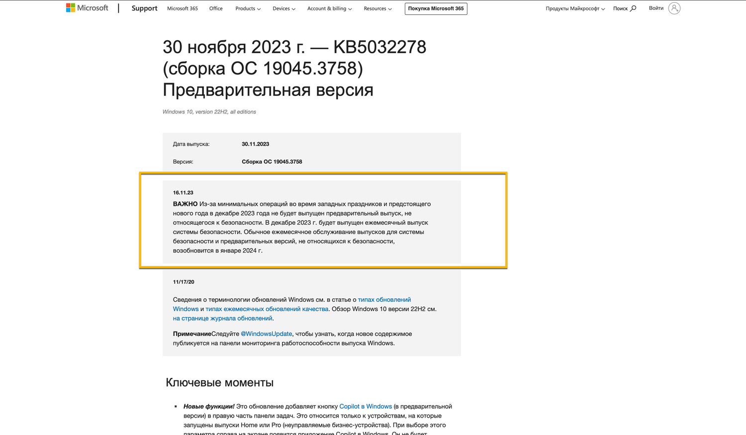 В декабре 2023 года компания Microsoft планирует приостановить выпуск предварительных обновлений для операционных систем Windows 11 и Windows 10. Об этом компания сообщила в примечаниях к релизу KB5032278 (Build 19045.3758) Preview для Windows 10, версия 22H2. Это решение обусловлено сокращением операционной активности во время западных праздников и в преддверии Нового года. Важно отметить, что в этот период не будут выпущены обновления, которые не связаны с безопасностью.