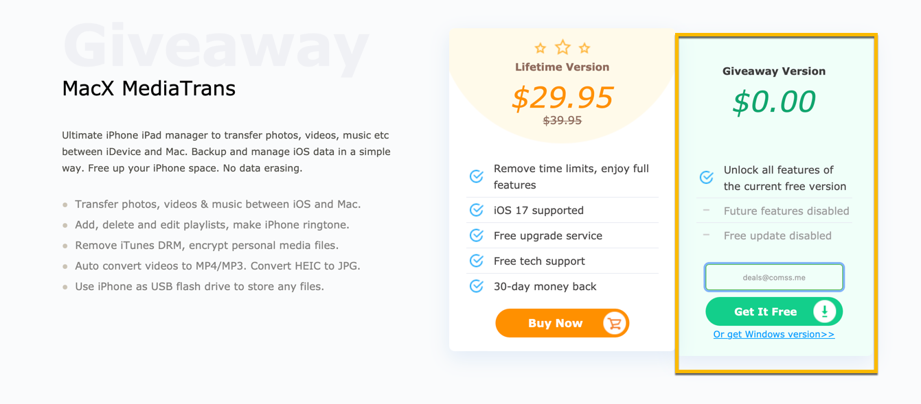 - В разделе Giveaway Version укажите ваш адрес электронной почты и нажмите "Get It Free".