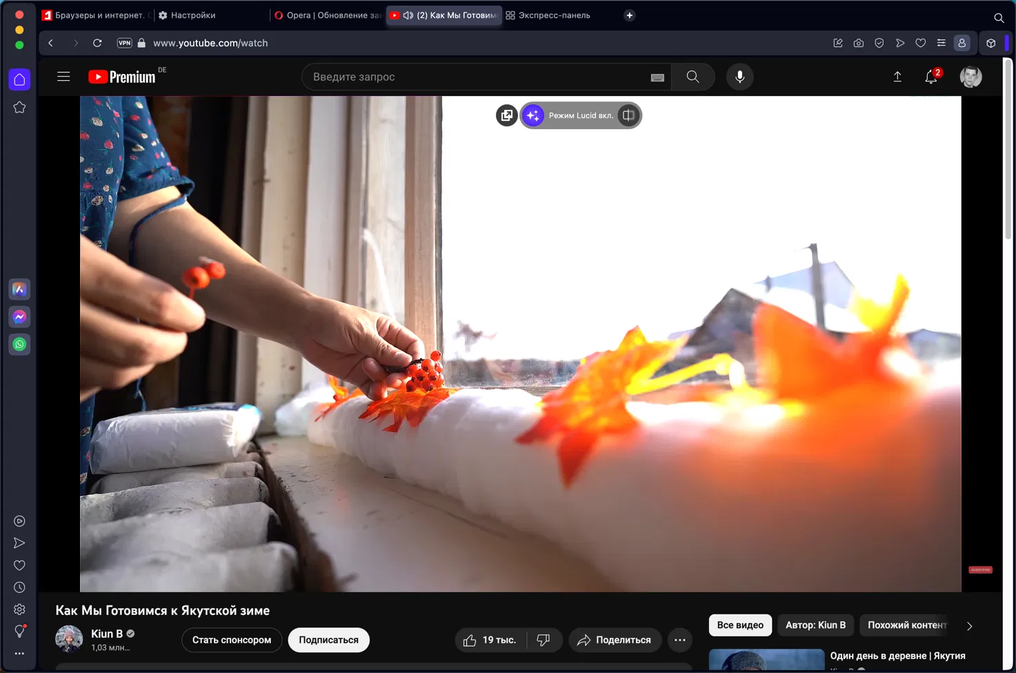 Значок режима Lucid появляется, когда вы заходите на сайт с видеоконтентом. Его можно активировать, нажав на значок с тремя звездочками. Улучшение качества видео можно увидеть в режиме реального времени, перетаскивая ползунок слева направо по видео. Уровень улучшения качества видео можно дополнительно настроить в настройках браузера.