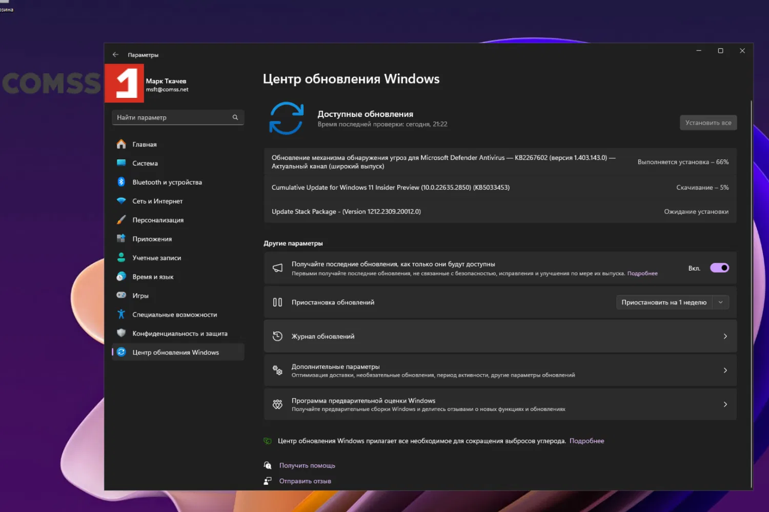 Примечание. Microsoft заблокировала установку обновлений для инсайдеров Windows 11 в России и Беларуси. Для установки Windows 11, Версия 23H2 (Сборка ОС 22635.2850) вы можете использовать наши DNS-серверы: Установка инсайдерских сборок Windows 11 с помощью Comss.one DNS.
