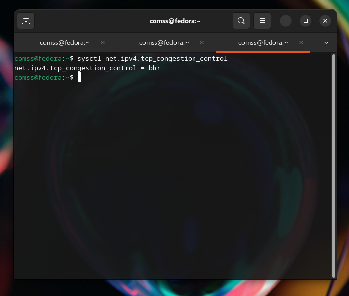 Для проверки активации TCP BBR, используйте команду sysctl net.ipv4.tcp_congestion_control.