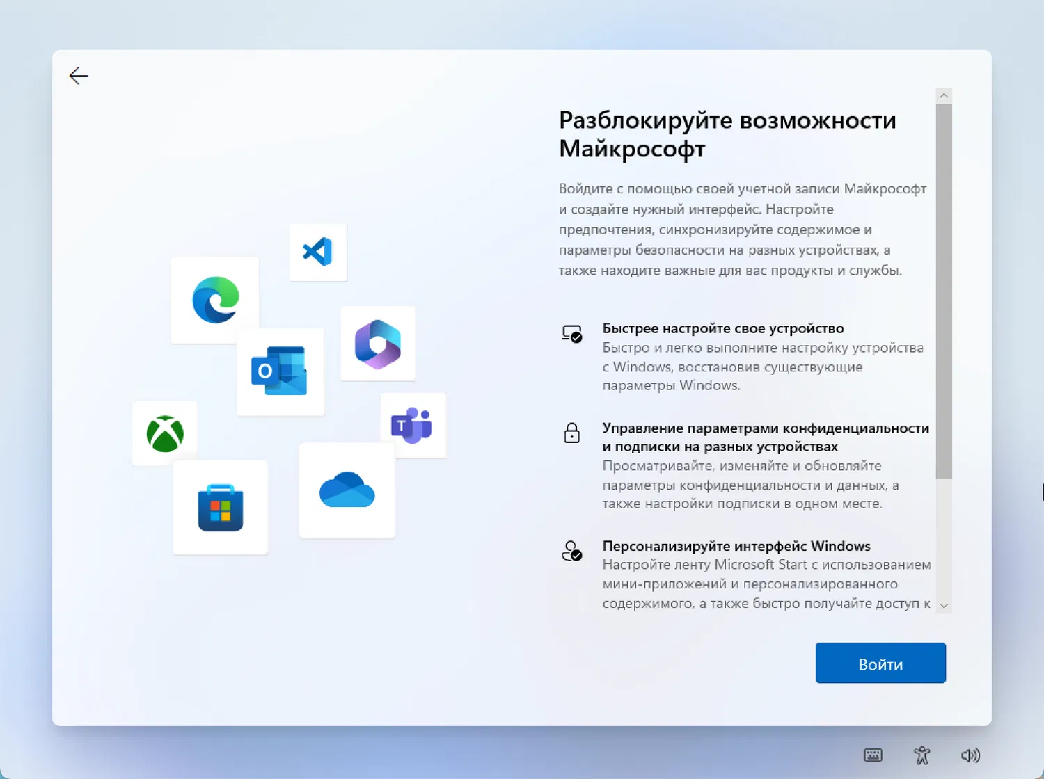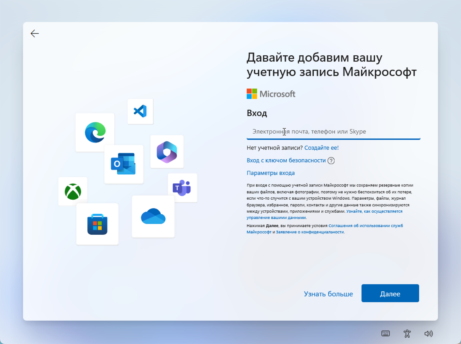 После установки вы можете настроить систему по своему вкусу, включая параметры конфиденциальности, аккаунт Microsoft и настройки облачных служб.