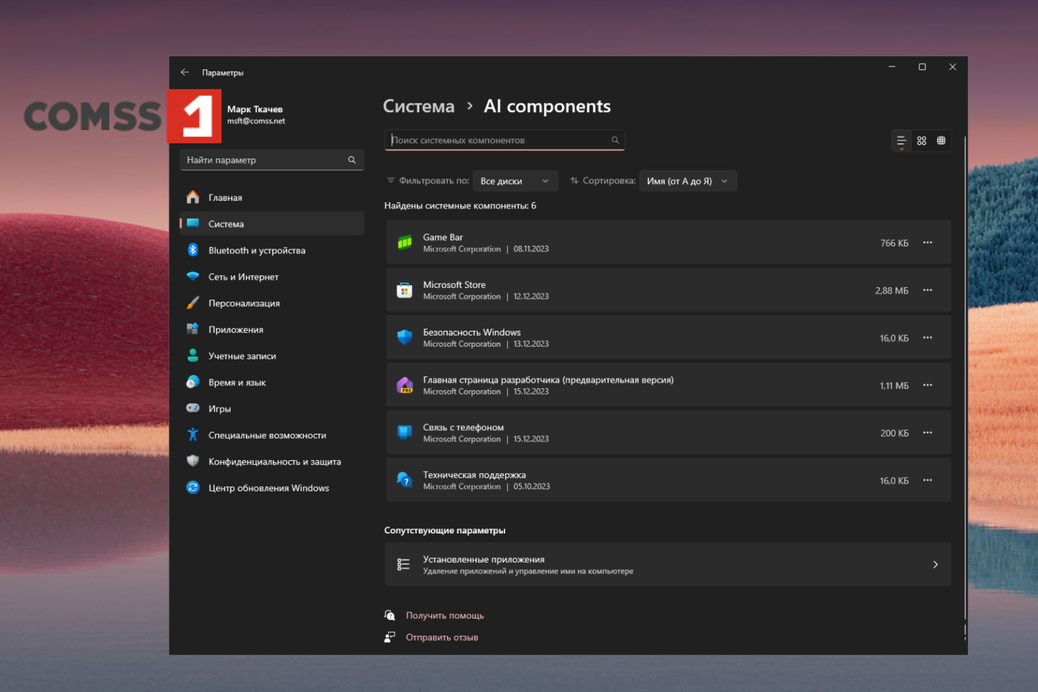 После этого перейдите в приложение приложение «Параметры», и зайдите в раздел «Система > AI components».
