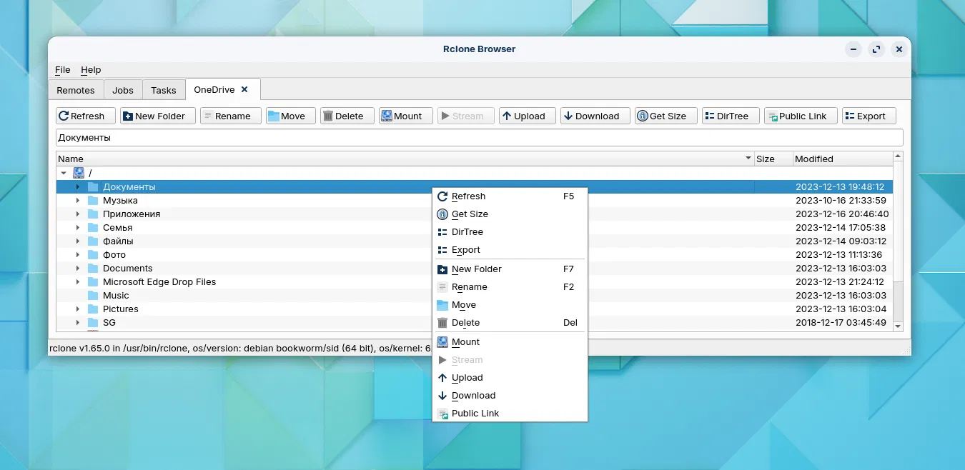 Rclone Browser – это кроссплатформенный, графический интерфейс пользователя (GUI) для Rclone, мощного инструмента командной строки, предназначенного для управления файлами на облачных хранилищах. Rclone поддерживает множество облачных сервисов, таких как Google Drive, Amazon S3, Dropbox, Microsoft OneDrive, Mega, Koofr, Облако Mail.ru, Яндекс диск, Pcloud, Proton и многие другие.