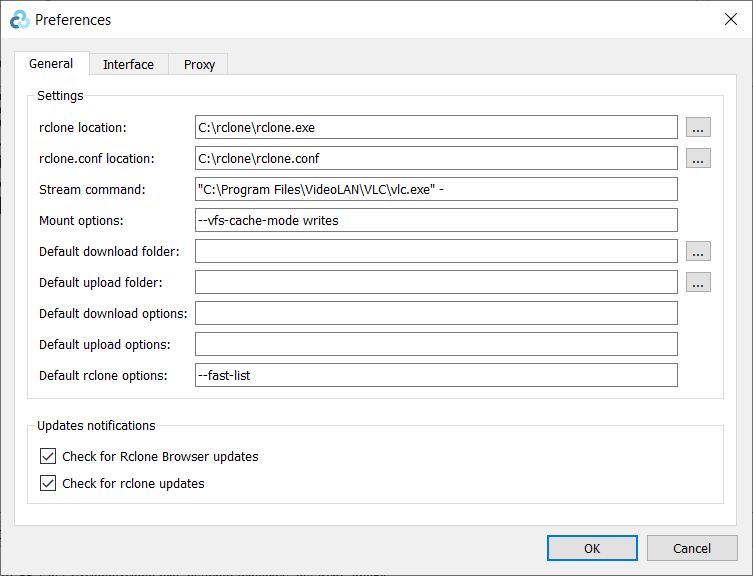 Откройте настройки Rclone Browser (File – Preferences), в разделе Stream Command укажите следующие команды: vlc - или mpv -, в зависимости от установленной программы.