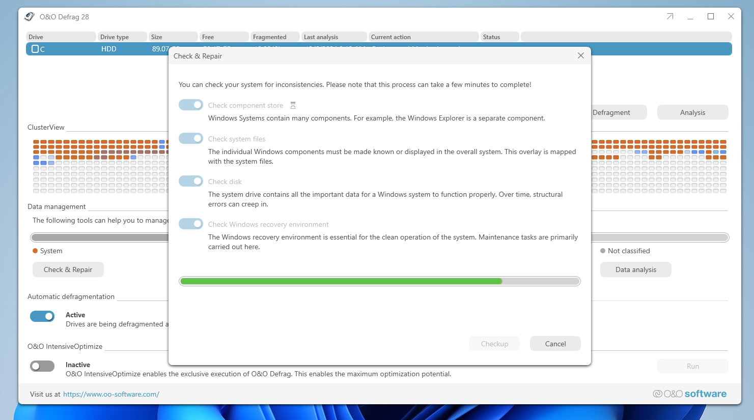 - O&O IntensiveOptimize: Добавлена возможность тестирования и восстановления среды восстановления, а также поддержка работы с дисками, зашифрованными BitLocker.