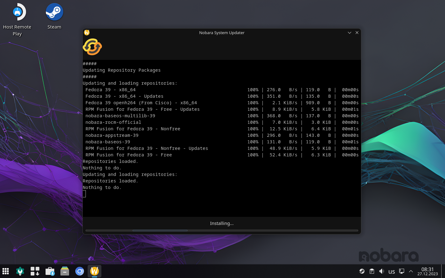 Nobara Linux 39 делает акцент на улучшении игрового опыта. В частности, были внесены улучшения в пакет Steam, включая добавление библиотеки libextest для поддержки контроллеров Steam Deck и Steam Controller в среде Wayland. Это обеспечивает более плавное взаимодействие с игровыми устройствами и улучшает общий игровой процесс.