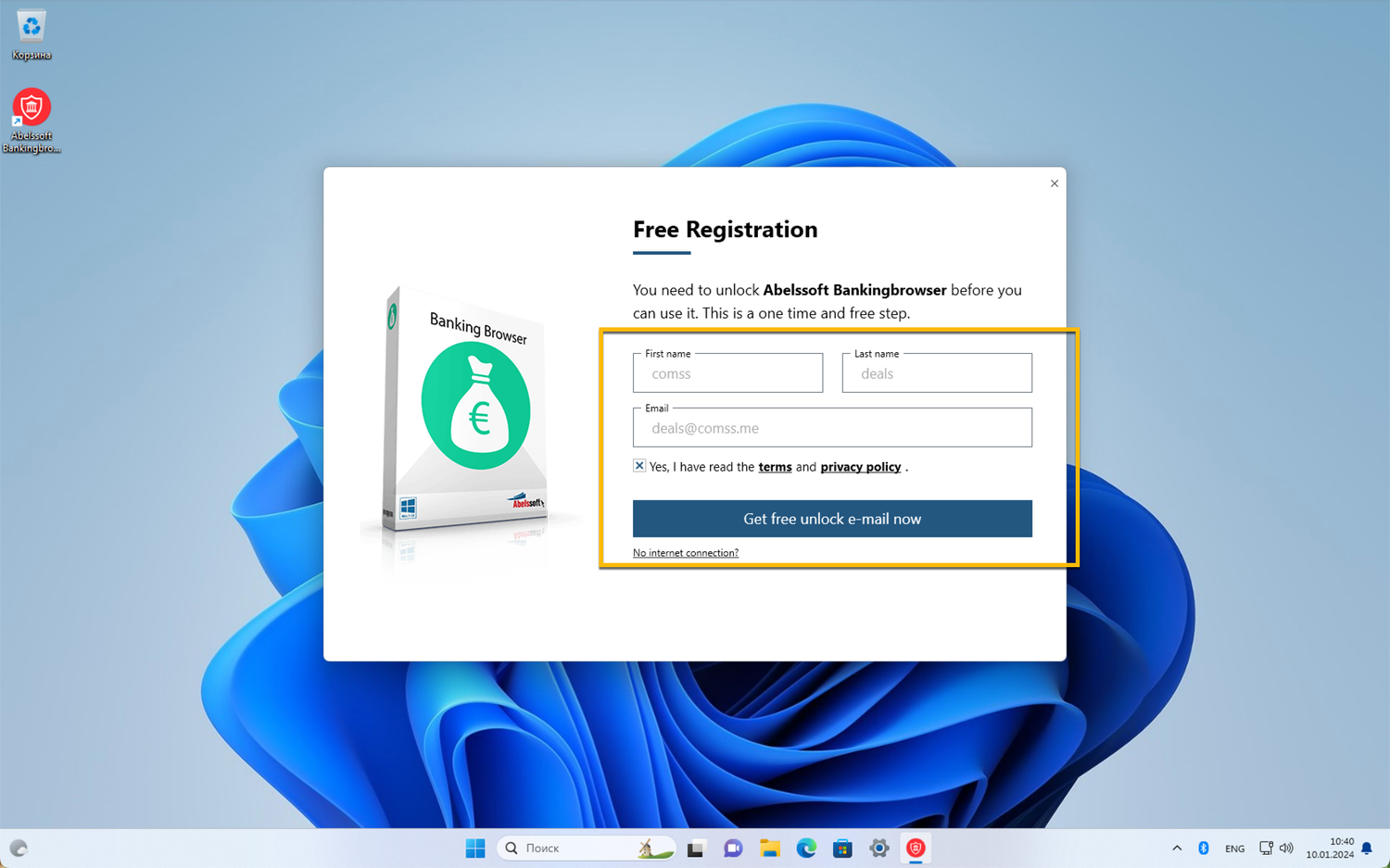 Для получения бесплатной лицензии Abelssoft BankingBrowser 2023 выполните следующее: