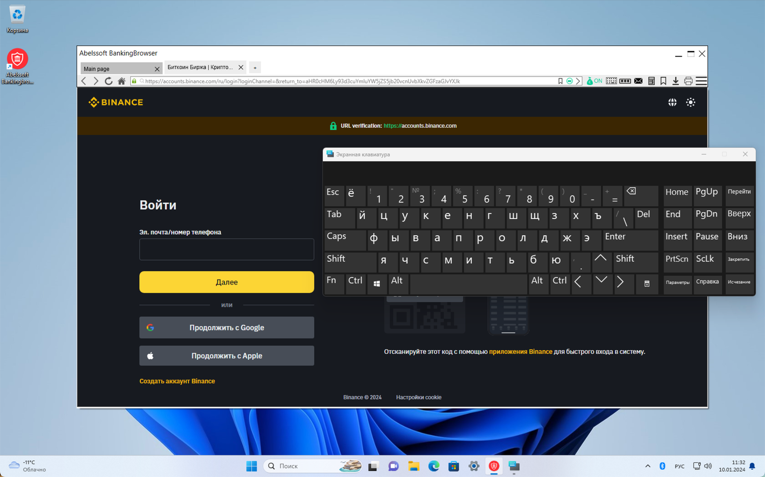 - Виртуальная клавиатура: Для защиты от кейлоггеров, которые могут записывать нажатия клавиш, в программе предусмотрена виртуальная клавиатура.