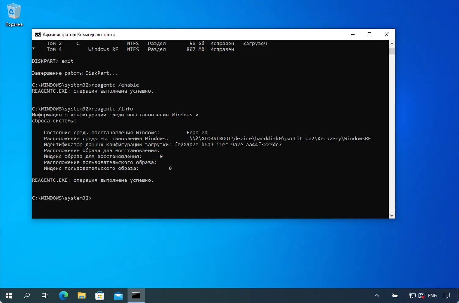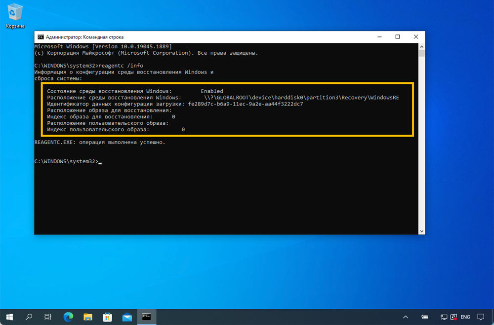 - Введите reagentc /info в командной строке.