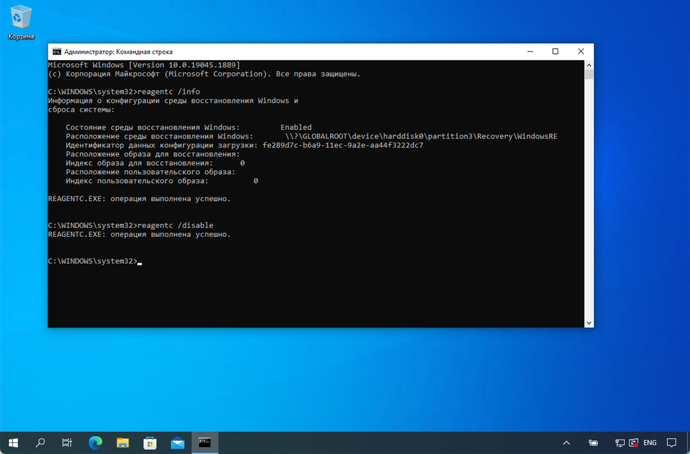 - Введите reagentc /disable