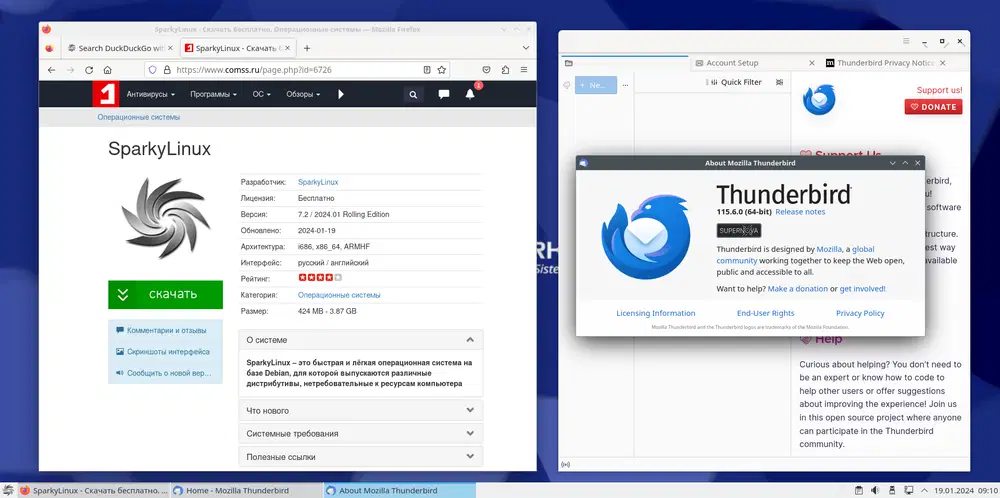 - Все пакеты были обновлены из репозиториев Debian "Trixie" и Sparky "sisters" по состоянию на 17 января 2024 года.