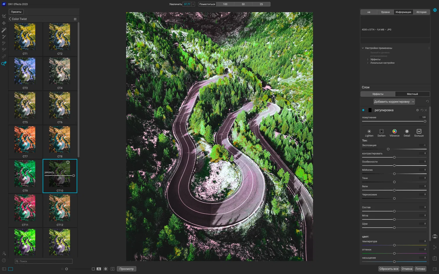 Она позволяет создавать различные стили, от HDR до элегантных черно-белых изображений, и сохранять собственные пресеты для быстрого доступа. Также в программе присутствуют инструменты для выборочного применения эффектов и регулировки в реальном времени с отзывчивыми ползунками.