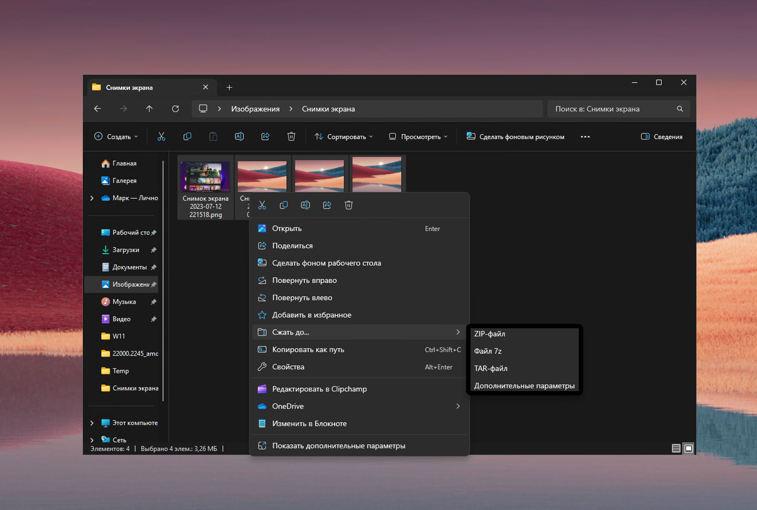 Microsoft вносит дополнительные изменения в файловый менеджер «Проводник». В 24H2 помимо поддержки ZIP-файлов появится возможность создавать сжатые архивные файлы 7zip и TAR. В выпуске 23H2 добавлена возможность извлекать эти архивные файлы, но не создавать их. Microsoft также заявляет, что улучшила производительность Проводника при открытии больших ZIP-файлов.