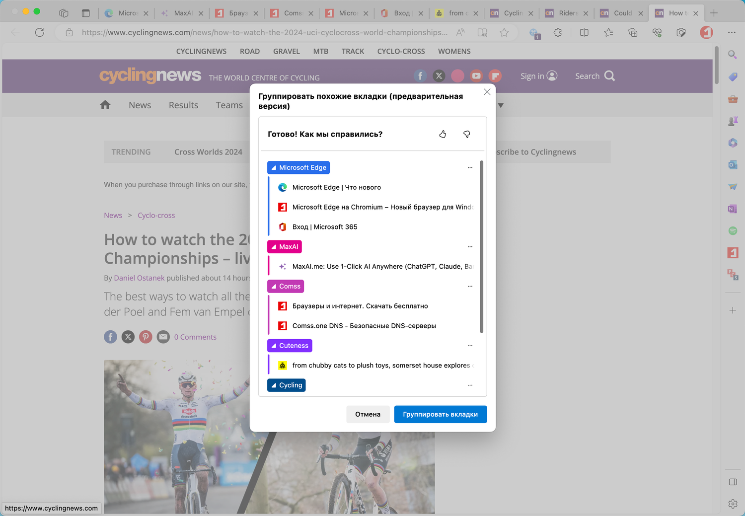 Группировка схожих вкладки в Edge: вопрос конфиденциальности