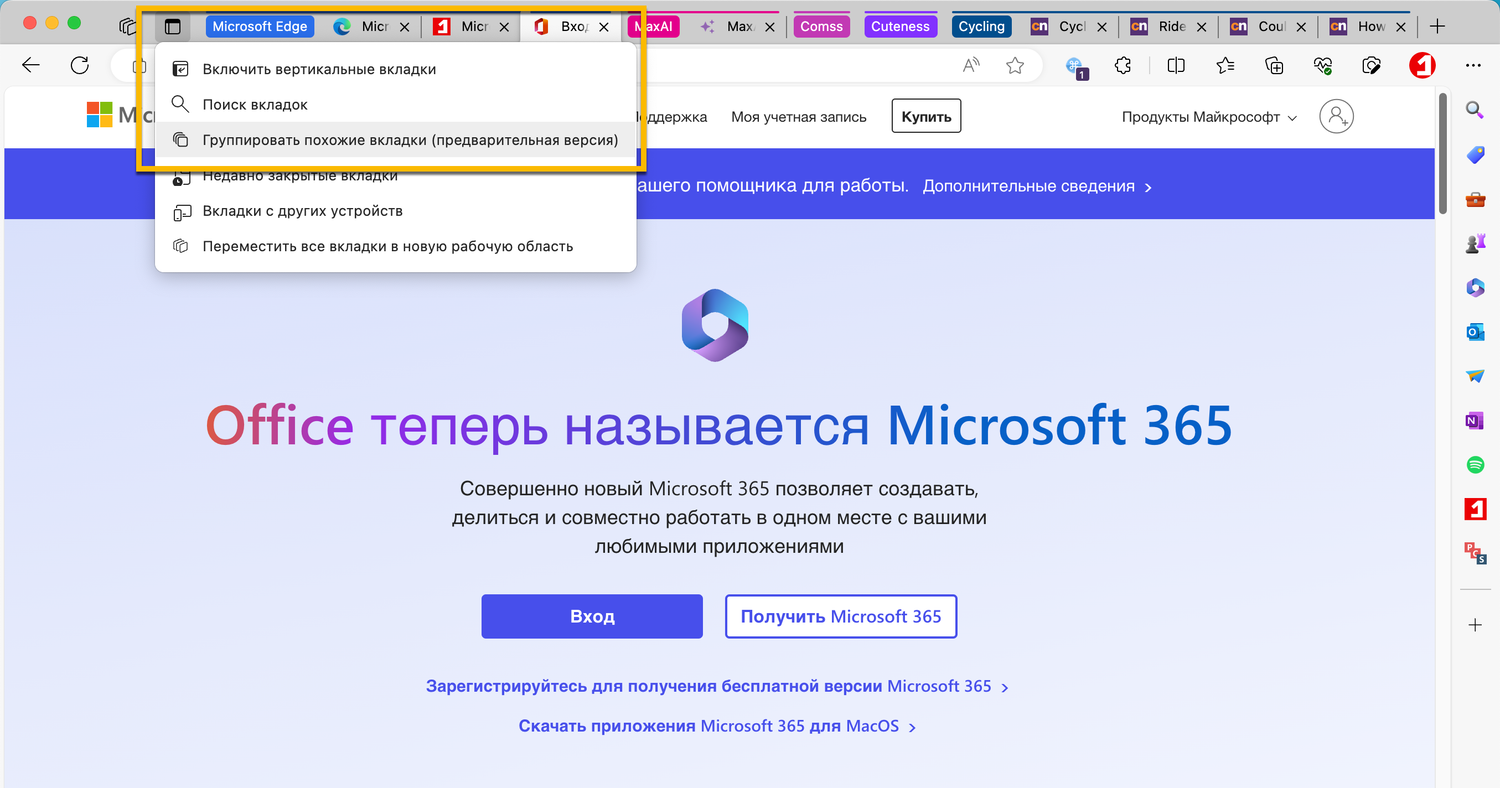 Новейшая функция Microsoft Edge на основе искусственного интеллекта (ИИ) помогает пользователям объединять открытые вкладки в группы для улучшения управления. Группы вкладок, представленные в Microsoft Edge в 2021 году, — это полезная функция, позволяющая улучшить организацию вкладок в браузере.