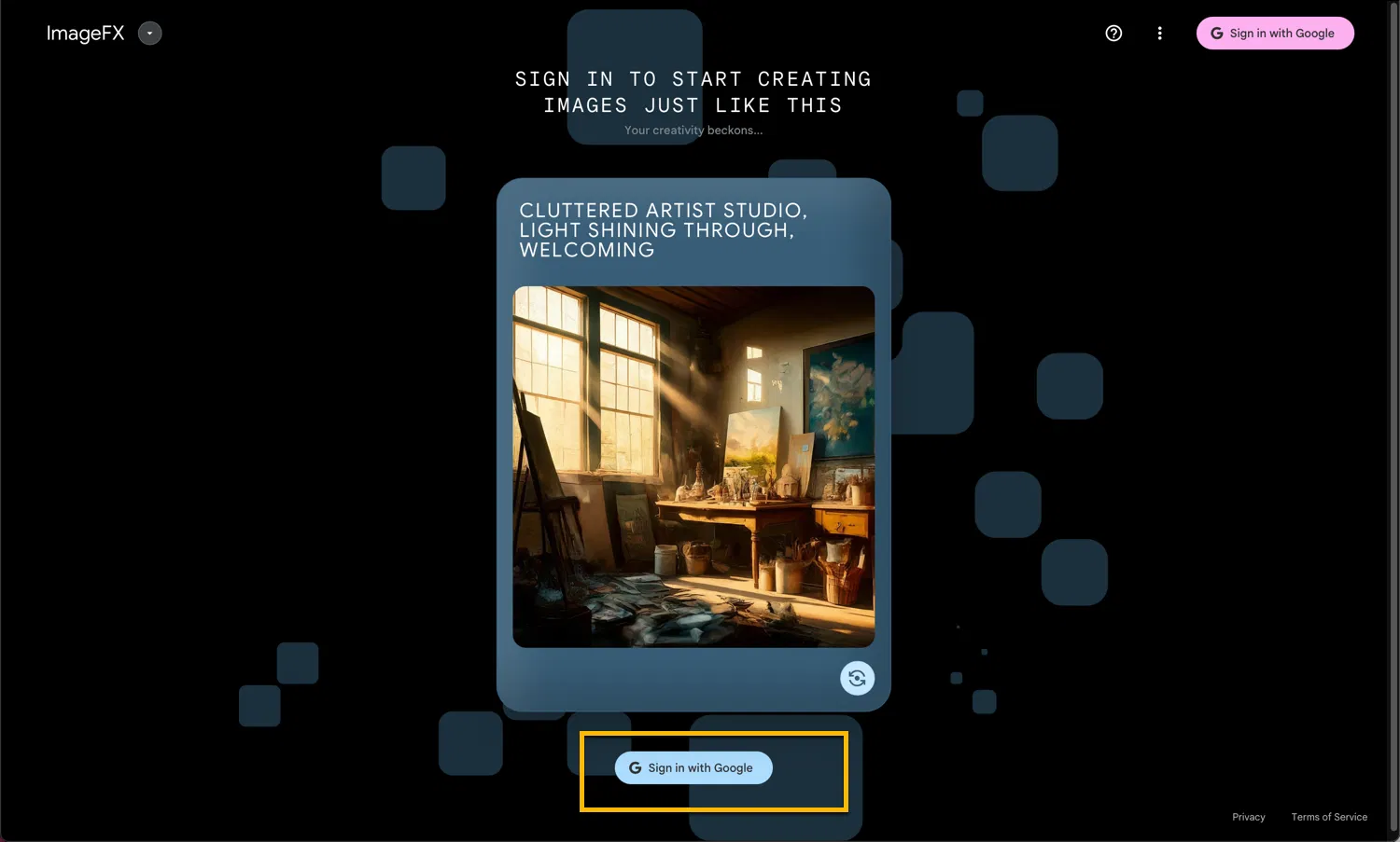 - Перейдите на сайт Google ImageFX и нажмите Sign in with Google .