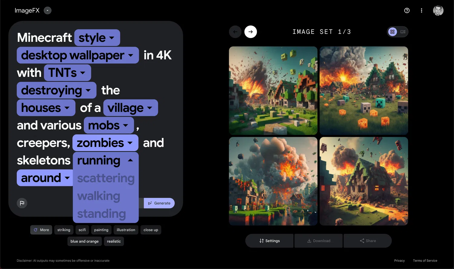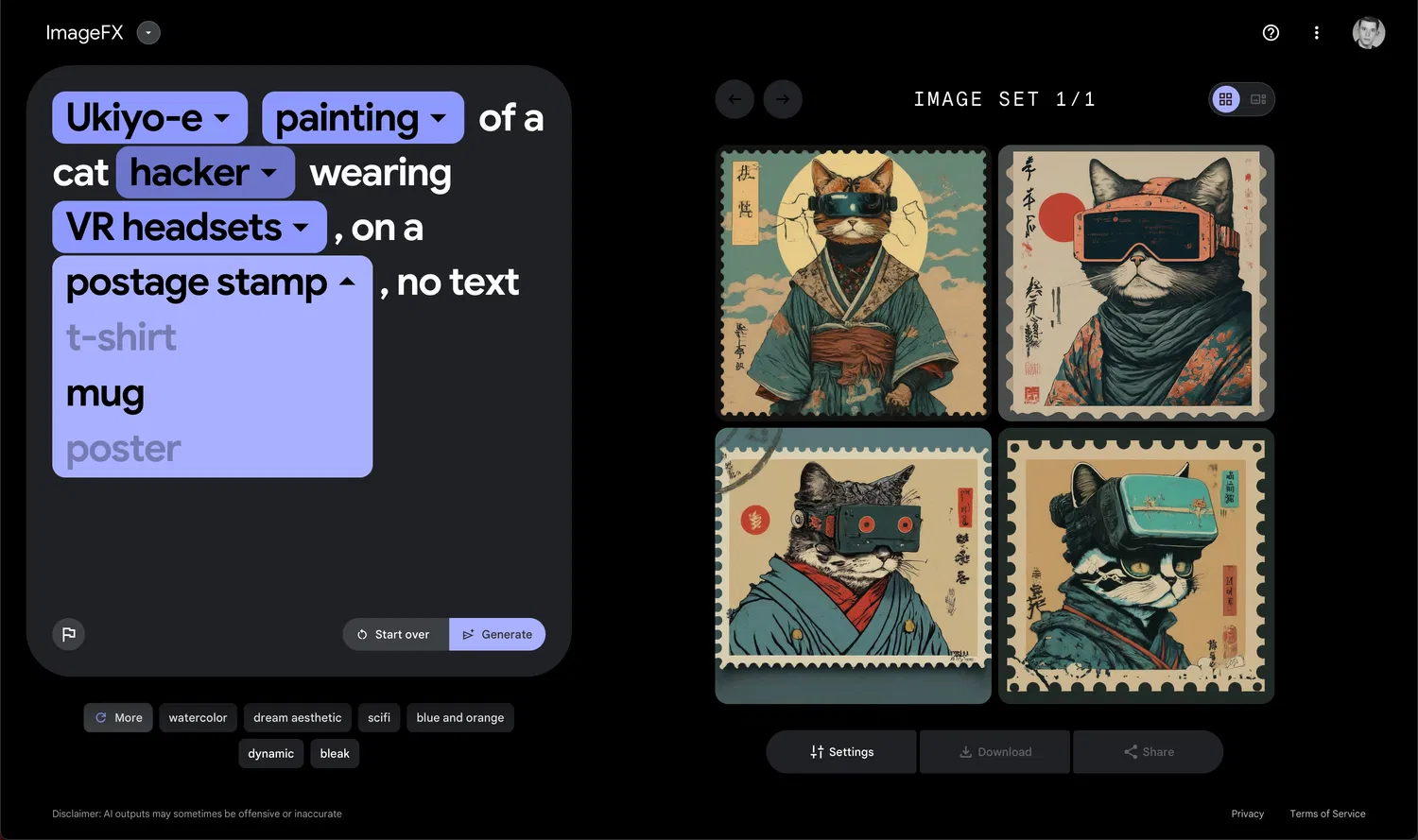 ImageFX от Google — это инструмент искусственного интеллекта, предназначенный для генерации изображений на основе текстовых запросов. Этот сервис позволяет пользователям создавать изображения, выбирая из заранее подготовленных вариантов стилей, объектов и действий, а также позволяет формировать задания полностью с нуля. ИИ может предложить до четырех вариантов изображений для каждого запроса. В сервисе доступно несколько стилей оформления, включая импрессионизм и рисунки от руки. Кроме того, есть возможность создавать реалистичные изображения людей благодаря использованию усовершенствованной версии ИИ под названием Imagen 2.