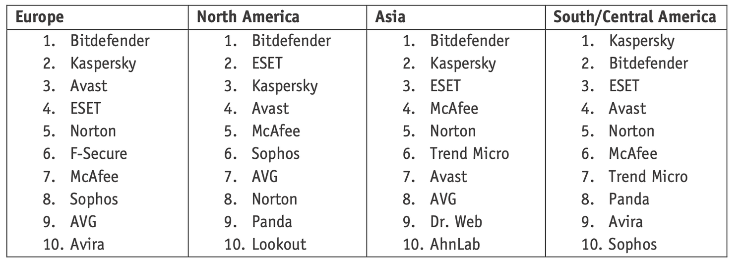 - Безопасность настольных ПК: Пользователи в основном полагаются на несколько известных производителей антивирусных продуктов, среди которых Bitdefender, Kaspersky, Microsoft и ESET ( пользуются наибольшим доверием по всему миру.