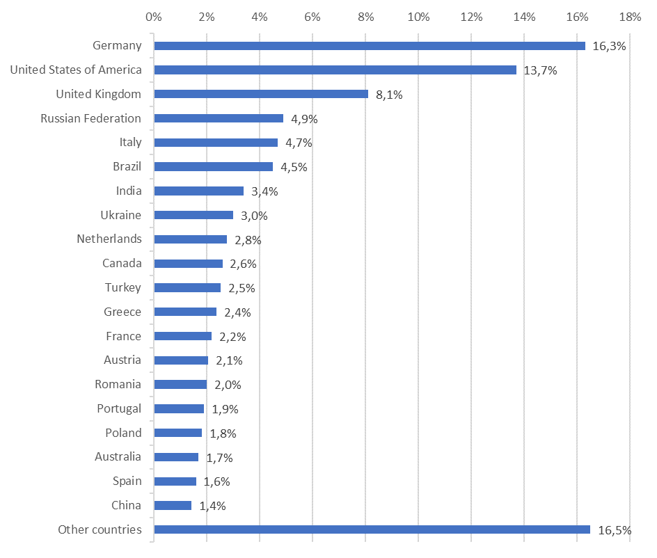 - География участников: Больше всего ответов поступило из Германии, за ней следуют США и Великобритания.