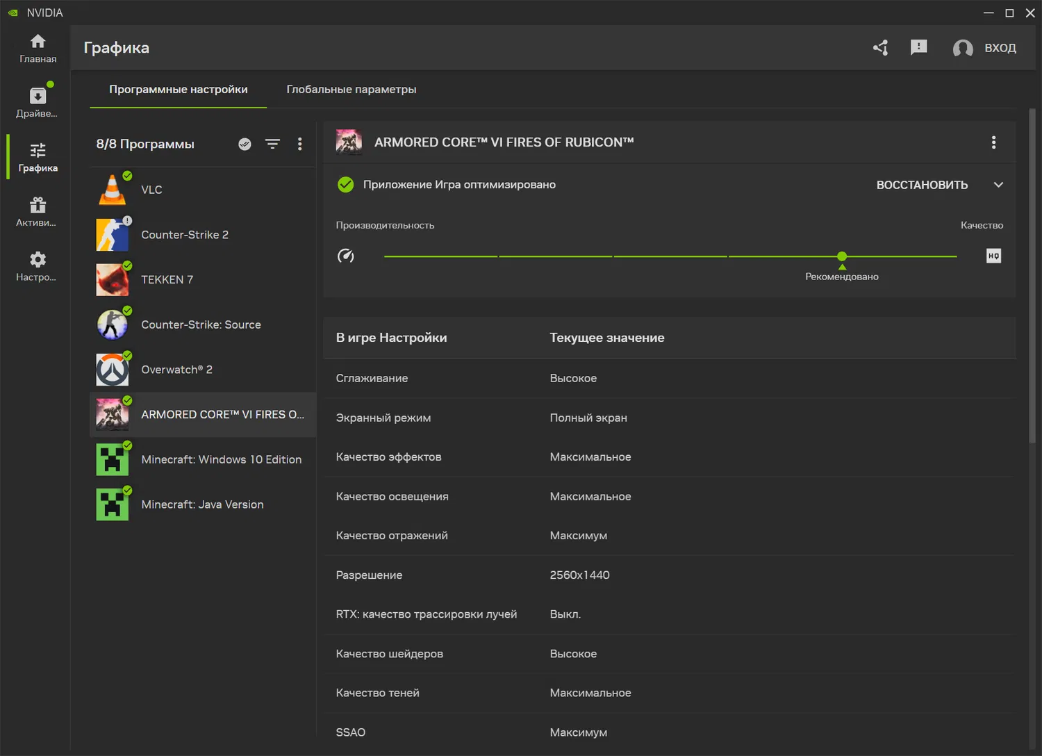 - Унифицированный центр управления GPU (раздел Графика: Приложение NVIDIA предлагает унифицированный центр управления GPU (раздел Графика), позволяющий тонко настраивать настройки игры и драйвера из одного места, а также вводит переработанный игровой оверлей для удобного доступа к мощным инструментам записи игрового процесса, мониторинга производительности и улучшающих игру фильтров, включая инновационные фильтры на основе искусственного интеллекта для пользователей GeForce RTX.