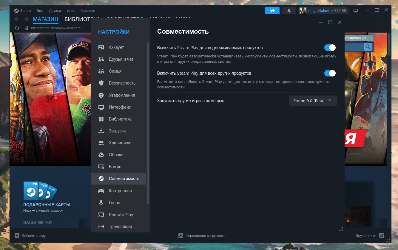 - Обновленные компоненты: В состав Proton 9.0 Beta входят последние тестируемые версии VKD3D-Proton, DXVK и DXVK-NVAPI, что улучшает поддержку DirectX 12 и Vulkan, а также оптимизирует работу с графическими API Nvidia.