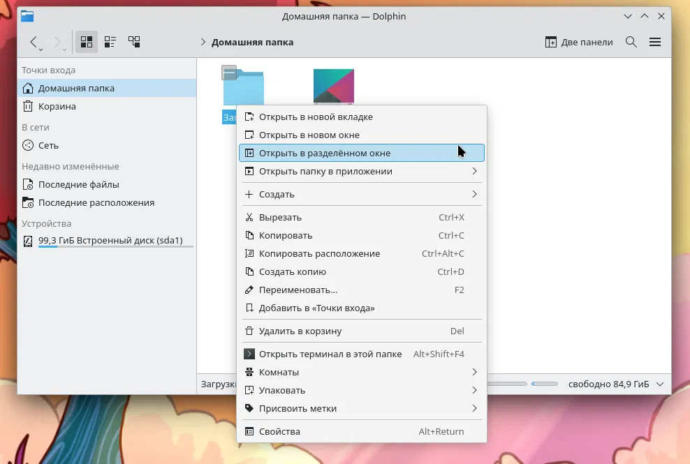 Файловый менеджер Dolphin обновлен: новый дизайн и расширенная функциональность для улучшения доступности. Используйте горячие клавиши для управления панелью инструментов и мониторинга дискового пространства. Открывайте папки в разделенном виде прямо из контекстного меню с новой функцией Dolphin.