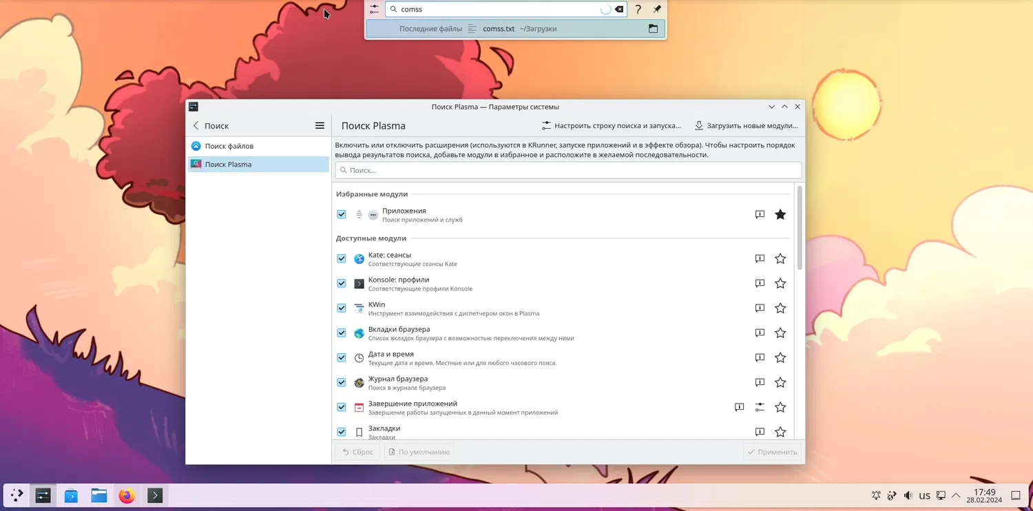 - Улучшенные функции поиска: Поиск в Plasma теперь включает новые функции для улучшения пользовательского опыта, включая настройку порядка результатов поиска и возможность конвертации между часовыми поясами.