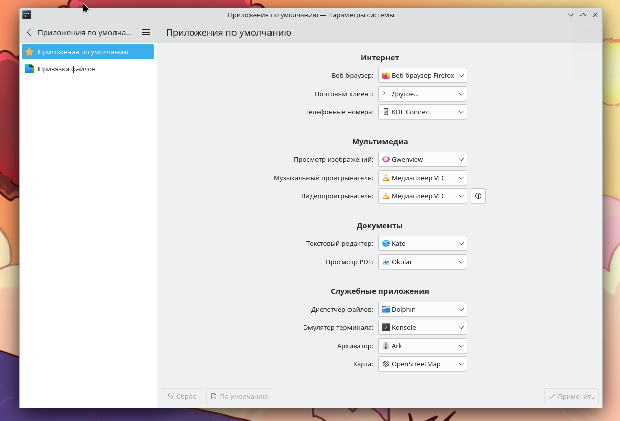 - Выбор приложений по умолчанию: Интерфейс для выбора приложений по умолчанию был переработан, чтобы включить более широкий выбор приложений для различных типов файлов и организовать их в тематические группы для более легкого доступа.
