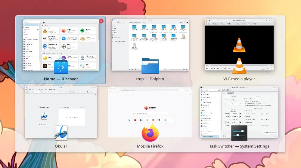 Переключатель задач по умолчанию серии Plasma 5.x, известный как «Breeze», подвергся критике за проблему с вертикальной прокруткой, которая становится очевидной даже при относительно небольшом количестве открытых окон. В ответ Plasma 6.0 установила новое направление, приняв переключатель задач «Сетка миниатюр» в качестве переключателя задач по умолчанию.