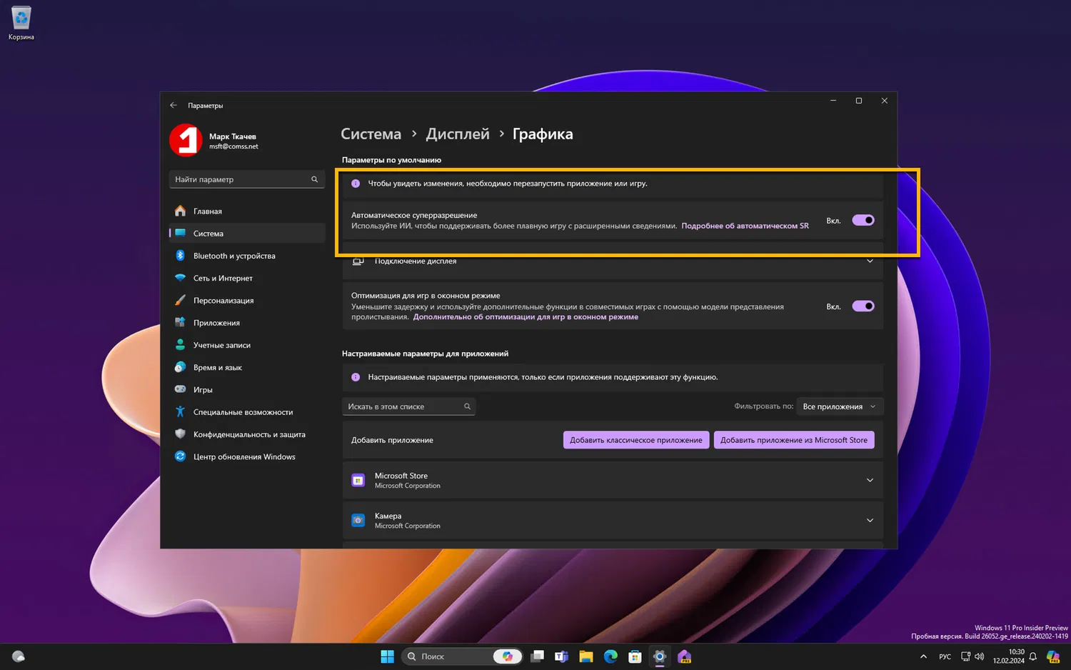 Публикация появилась через пару недель после того, как в тестовой версии Windows 11 была замечена функция «Автоматическое суперразрешение», которая «использует ИИ для более плавной игры с улучшенными деталями в поддерживаемых играх». По всей видимости, функция будет интегрироваться с существующими технологиями повышения разрешения, такими как DLSS, FSR и XeSS, а не предлагать альтернативу на уровне Windows.