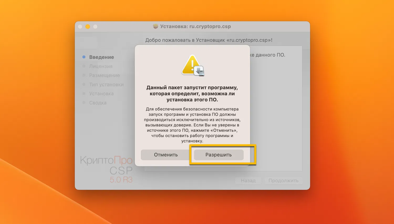 Установка КриптоПро CSP на macOS после блокировки