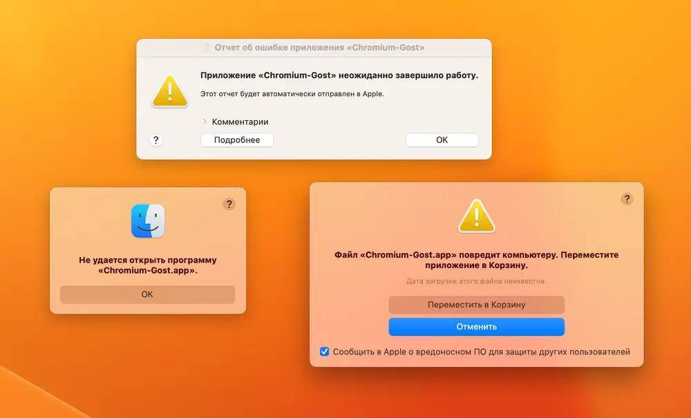 - Не удается открыть программу«Chromium-Gost.app».